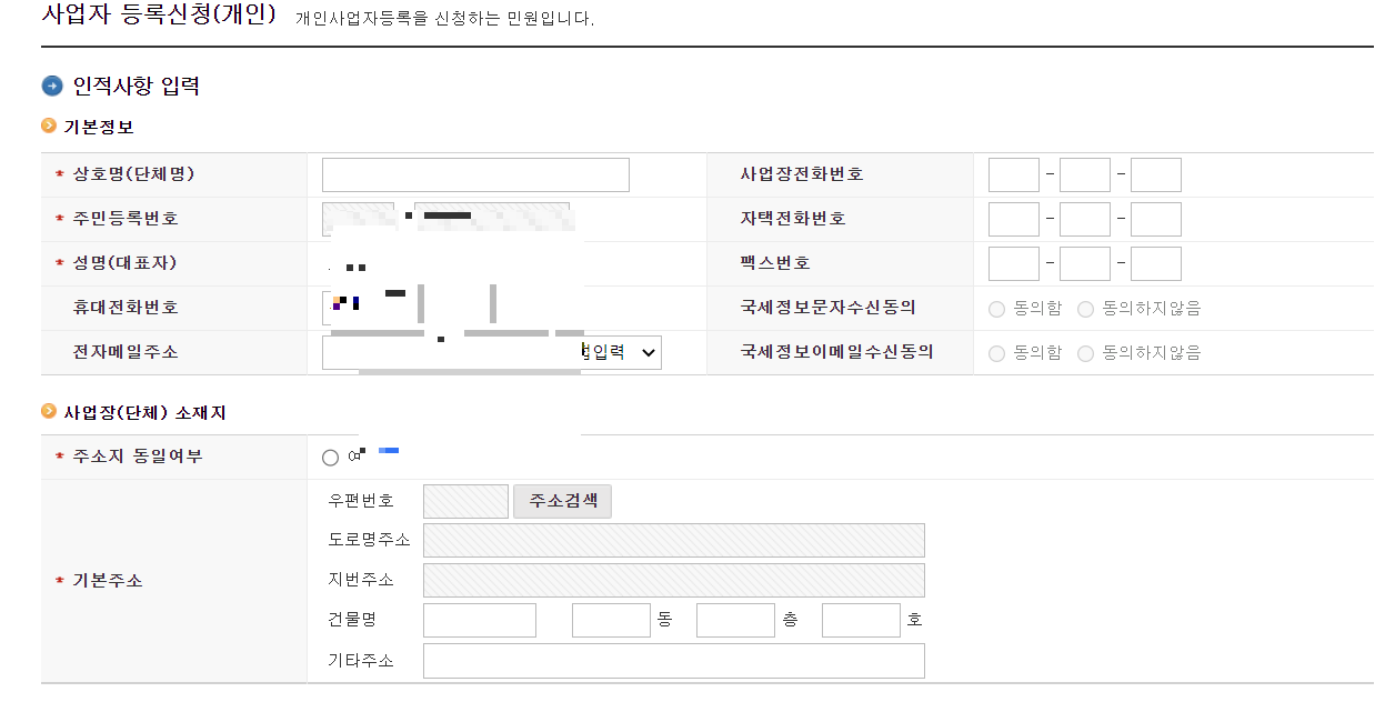 - 개인사업자 등록증 신청